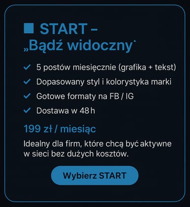 Tworzymy grafiki i treści AI. Wybierz najbardziej pasujący Ci pakiet lub zacznijmy od od próbnego jednorazowego zlecnia, które wyróżniają Twoją markę w sieci.